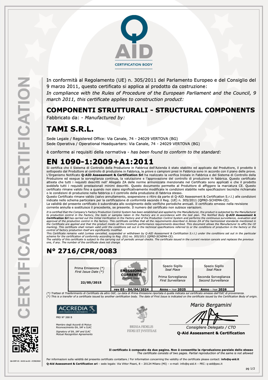 ai sensi della normativa europea UNI EN 1090-1:2012. Infine il