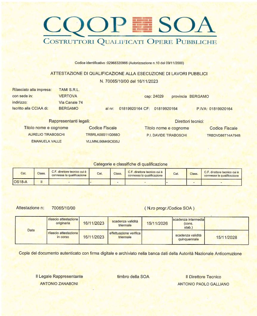 Da Novembre 2023 l’azienda TAMI ottiene anche l'attestazione OS18A – II° Categoria,